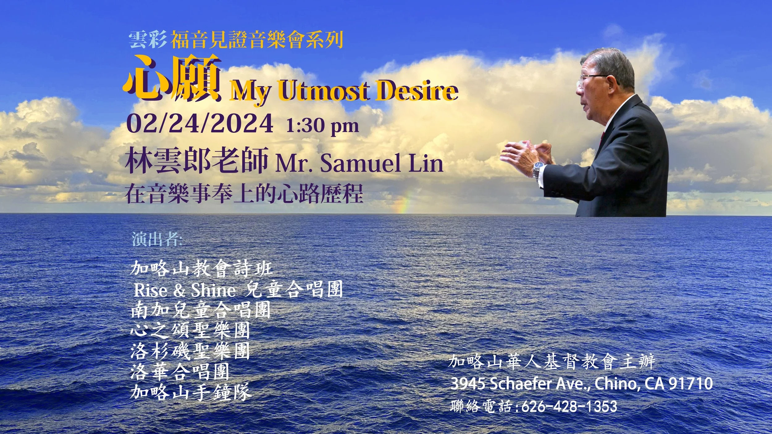 *This article was first published on February 24, 2024, in the program booklet for the testimonial concert “My Utmost Desire” by Maestro Yun-Lang Lin at Calvary Chapel Chinese Fellowship, and the article is now featured on the CCOLA’s official website.