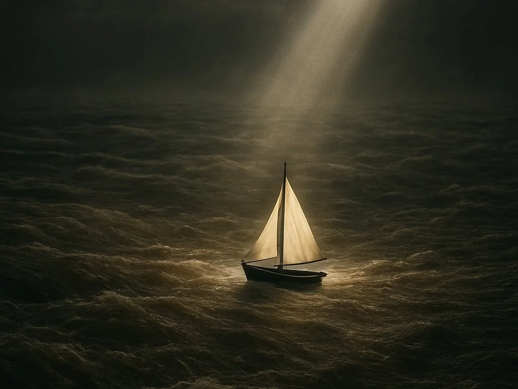 就像一條帆船在洶湧的急流中航行,失去方向;在茫茫的洋海中,尋找燈塔的引導;
